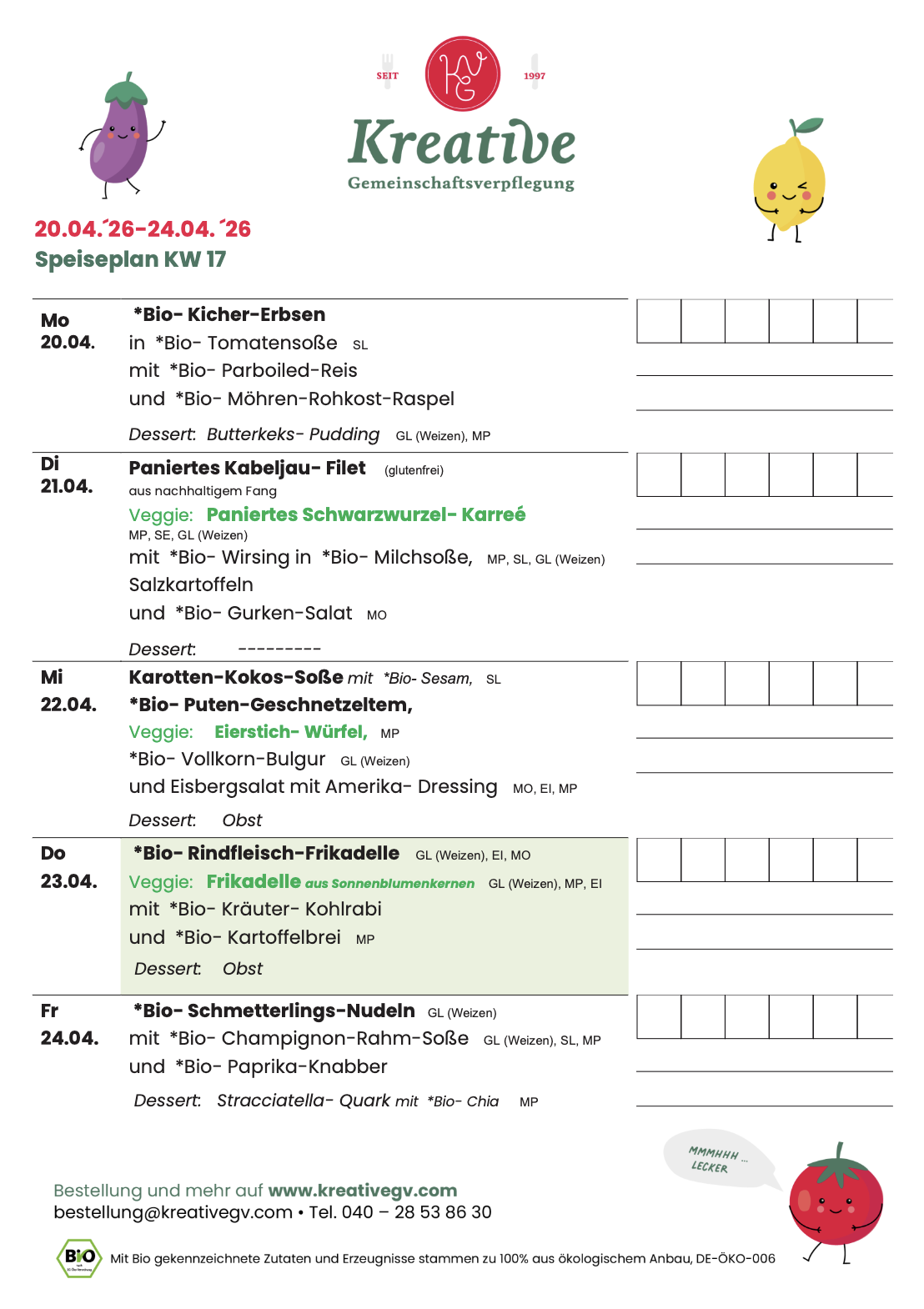 Speiseplan KW 17
